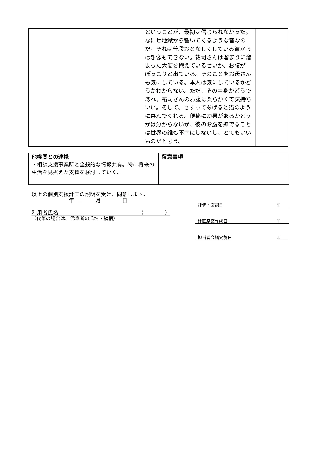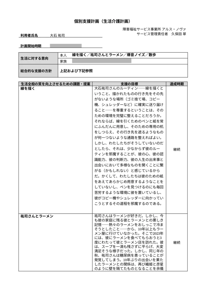 (裏)個別支援計画書より――大石祐司さんの場合